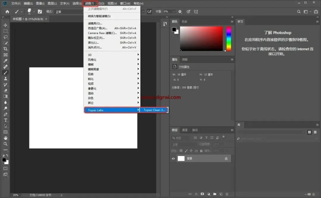 8、打开ps软件,新建文档,点击滤镜-Topaz Labs -Topaz Clean 3….