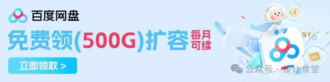 文末直接获取网盘链接,设计食堂会不定时分享优质资源,大家可以把“设计食堂”公众号设为★星标,第一时间获取最新推送,以防错过任何精彩优质内容。