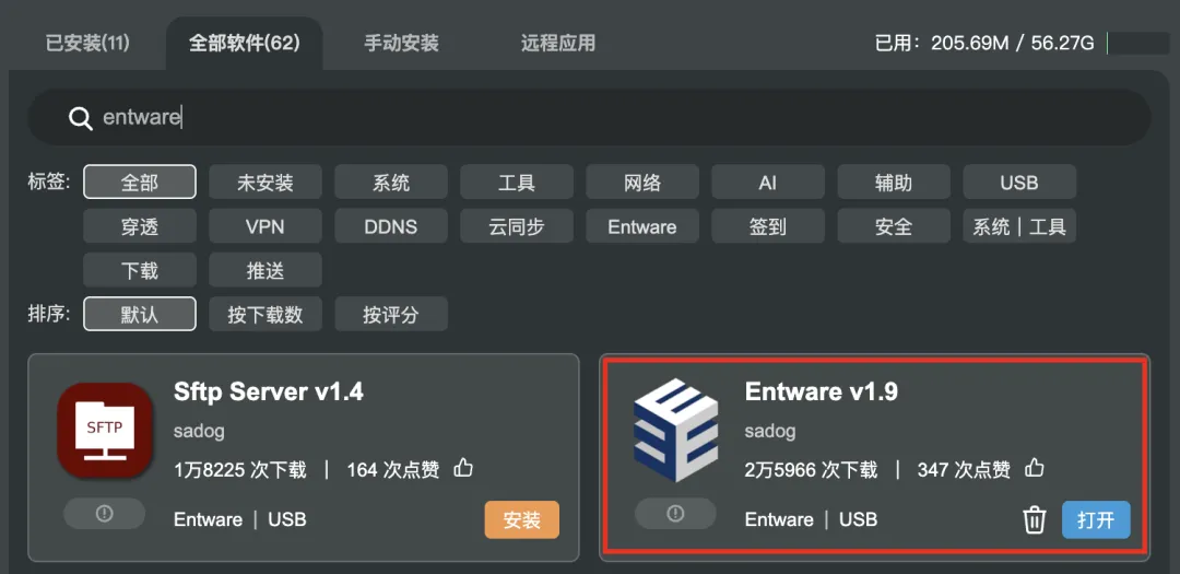 ▲ 华硕路由器(Merlin/官改固件)需要插入一个U盘安装Entware应用。
