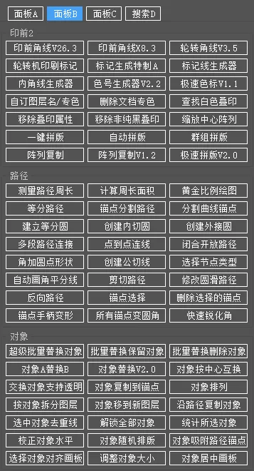 印前:各种角线生成、专色 / 墨印处理、缩排阵列; -