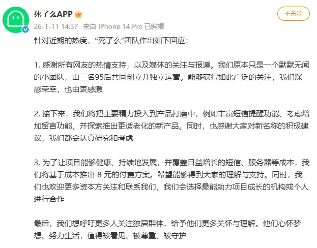 “死了么” 的争议从来不止 “名字晦气”,更在于它用 “直面死亡” 的噱头,掩盖了产品设计的粗糙与人文关怀的缺失。从邮件通知到涨价策略,每一个争议点都暴露了小团队在 “商业盈利” 与 “用户价值” 间的失衡。