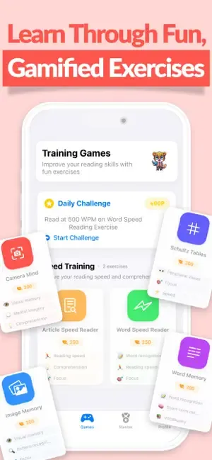 1、Speed Readingo Read 3x Faster ![]() 限免:内购限免|¥终身版→0 语言:英文 系统:iOS 16.0 推荐指数:⭐⭐⭐⭐ 介绍: 一款通过科学游戏化训练帮你提升阅读速度与理解力的应用。它提供个性化的学习路径,使用舒尔特方格等练习来扩展视野、增强专注力与记忆力。应用能精确追踪你的每分钟阅读字数(WPM)进步,适合学生、专业人士及任何希望高效阅读并吸收信息的用户。 ![]() ![]() ![]() 长按二维码 识别下载 |