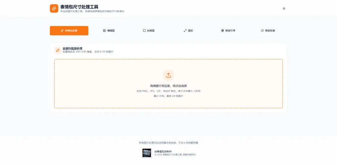 微信表情开放平台对素材(静态图、动态图、配套素材)的尺寸、大小、格式有极其严格且复杂的限制。手工处理多张高分辨率素材,耗时巨大且流程繁琐,严重打击创作积极性。