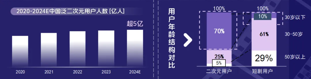 更关键的是,AI让漫剧精准击中了市场痛点。一方面,它承接了真人短剧成本飙升后的缺口,成为内容行业的“新增长极”;另一方面,它精准覆盖了Z世代二次元群体,快手数据显示,漫剧用户中二次元兴趣占比达76.79%,而泛二次元用户规模已达5.03亿,接近网民规模的一半。这些用户不仅愿意为优质内容付费,还具备强大的周边消费能力,为漫剧的商业化打开了想象空间。