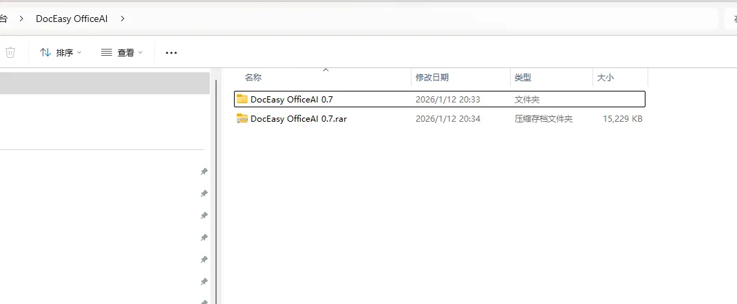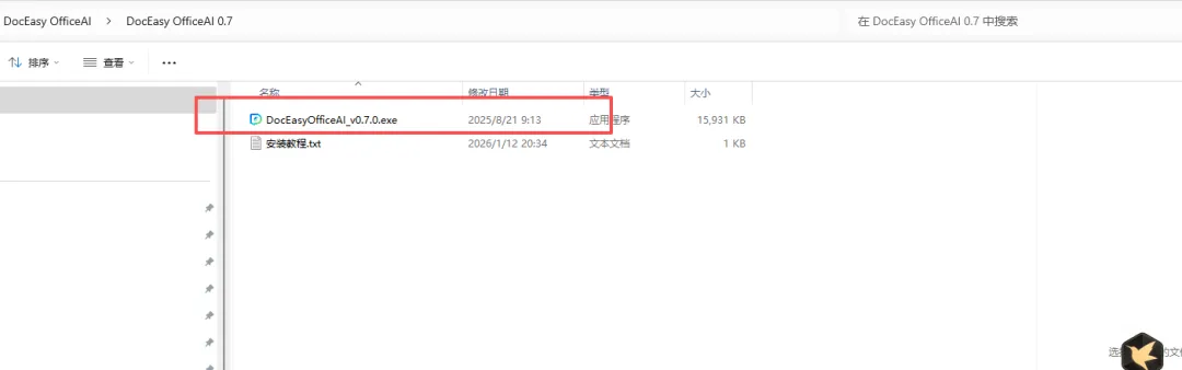 2.打开刚刚解压的文件夹,鼠标右键点击“DocEasyOfficeAI_v0.7.0.exe”选择“以管理员身份运行