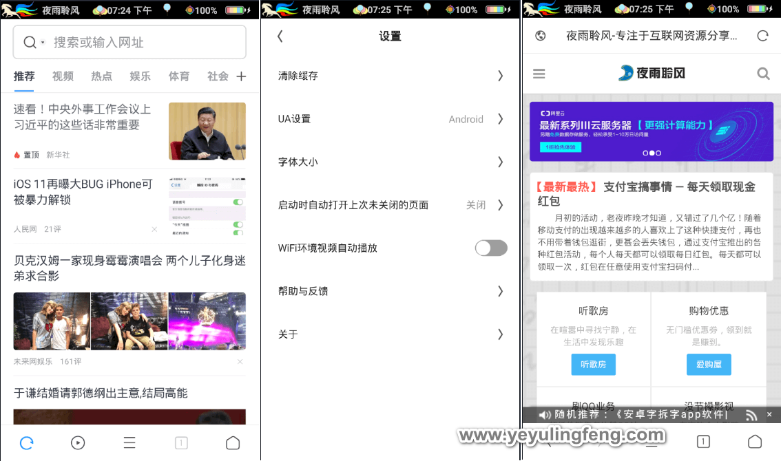 UC浏览器算是跨时代的产物了,在那个塞班以及各种山寨机横行的年代,除了能够极速压缩省流量的欧朋浏览器以外就算UC最好了,相信老司机们都懂老夜在说什么。如今的UC浏览器也不再仅仅是用来看小网站的了,而是集新闻资讯大鱼号为一体多元化的平台了,功能上做的还是挺让人满意的,UC震惊部就是最好的例子,老夜在UC上新闻没看几个,sao段子倒是学了不少……