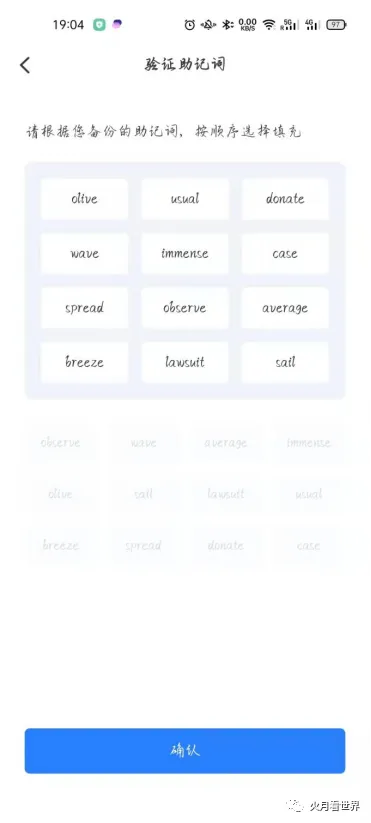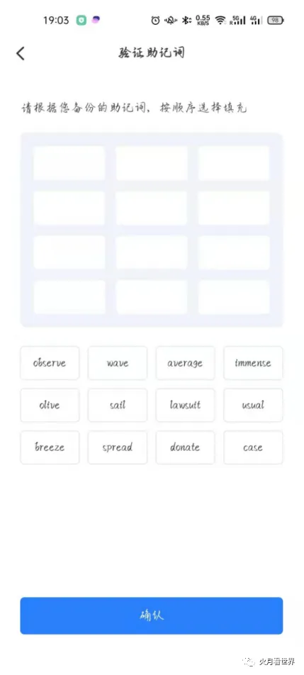 ⇒按次序依次点击填写12个助记词