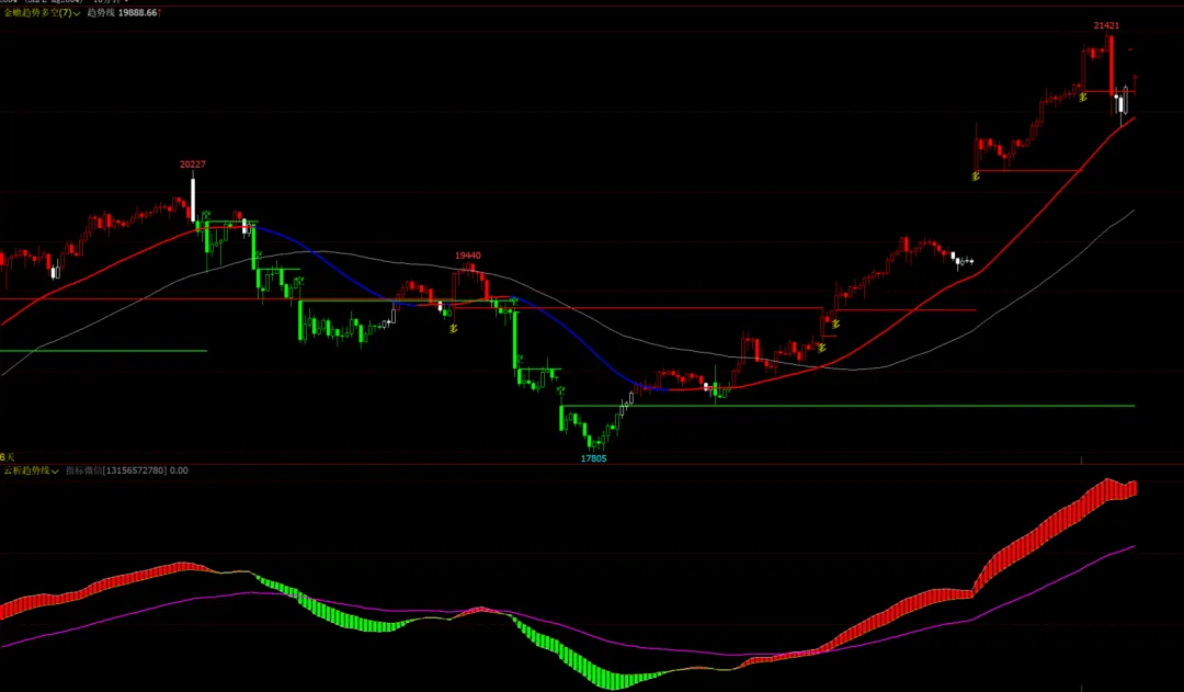 2、主图:趋势变色线,多空K变色,多空突破
