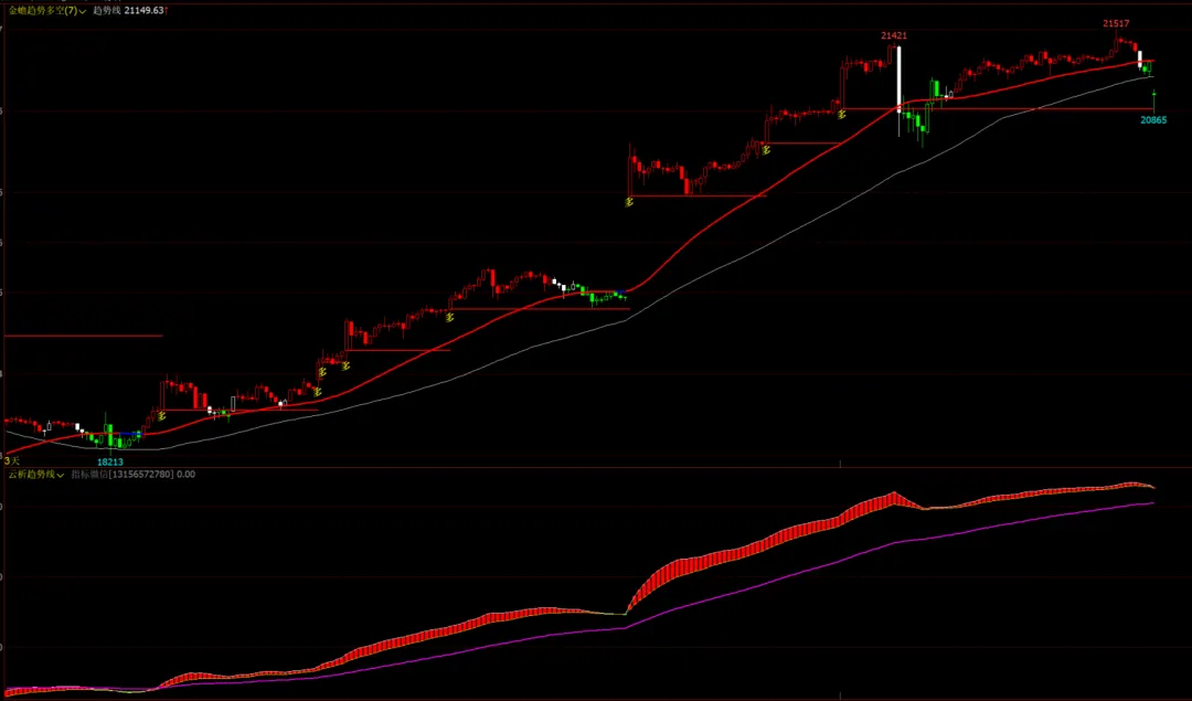1、金蟾趋势多空主图+云析趋势线幅图,无未来函数,当前信号一旦确认后,不消失,不漂移!