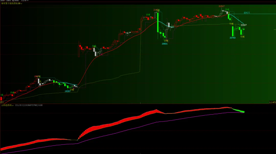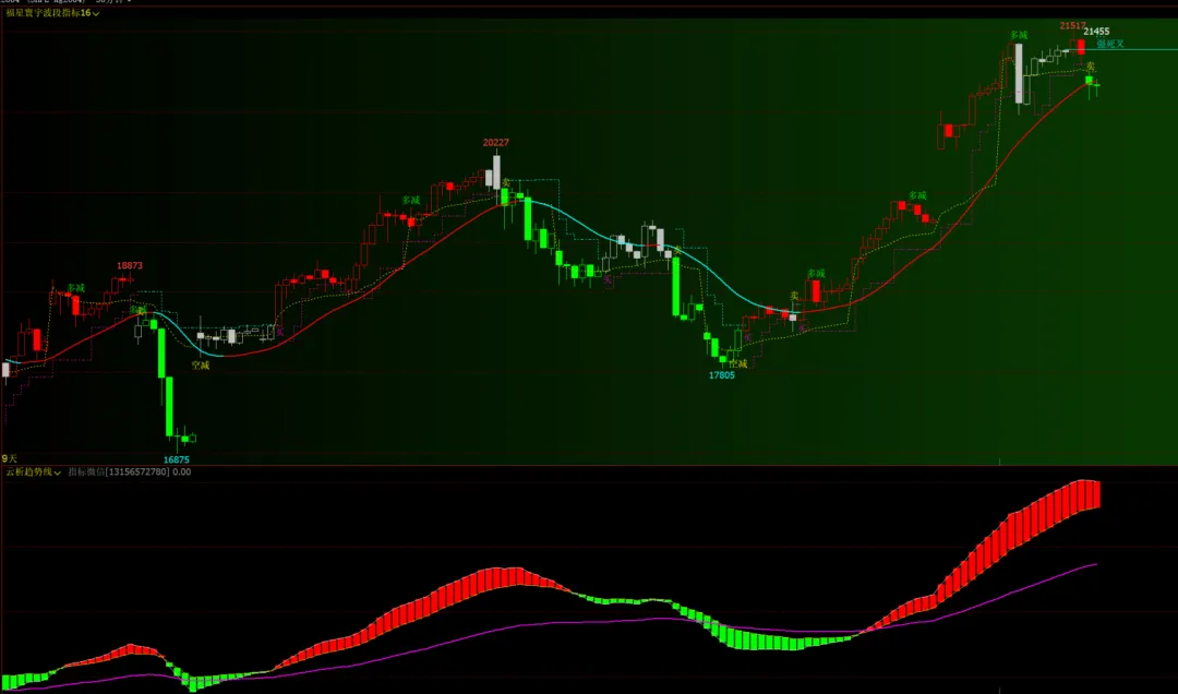 1、福星寰宇波段指标主图+云析趋势线幅图,无未来函数!