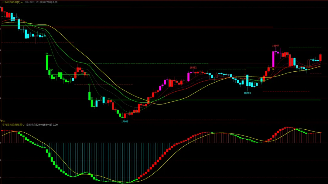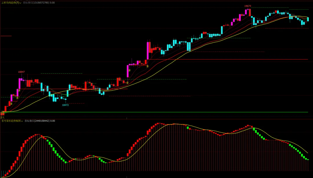1、云析均线趋势主图+苍穹量柱趋势幅图,无未来函数!