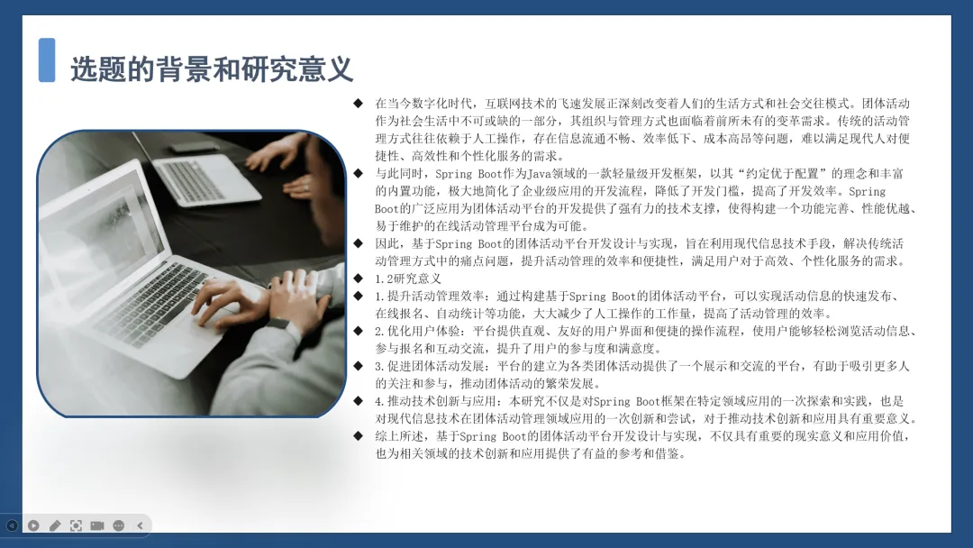 【JAVA项目源码+文案+PPT+讲解】基于springboot团体活动平台开发设计与实现-45547