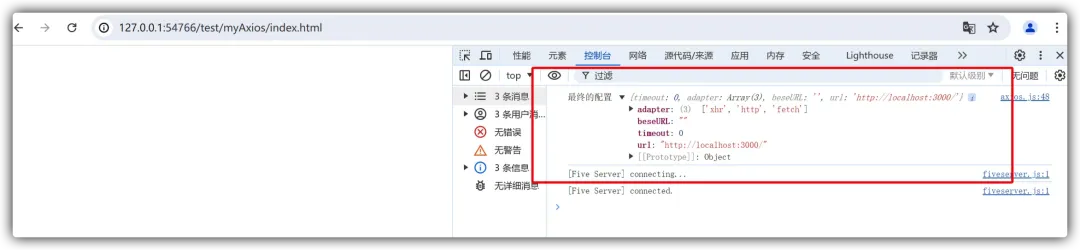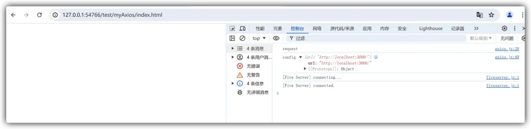 开发完毕之后,我们就可以在之前已经准备好的测试文件中导入 axios 实例来进行测试了: