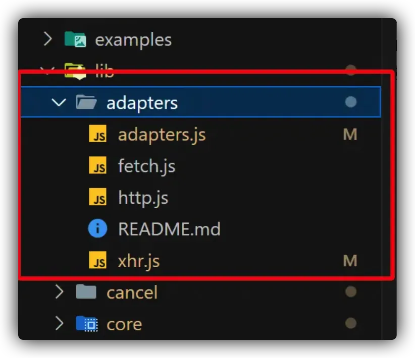 axios作为一个通用的http请求库就必须要解决这个问题。也就是它必须能够适应不同环境的请求方案。针对这个问题,axios 提出了 适配器 的概念,axios中所有的请求的发送都是基于这个适配器来进行发送的,源码中专门有一个模块来处理请求适配的问题: