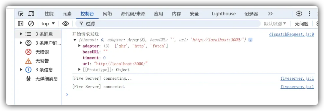 看一下控制台我们就可以发现请求方法被成功调用了: