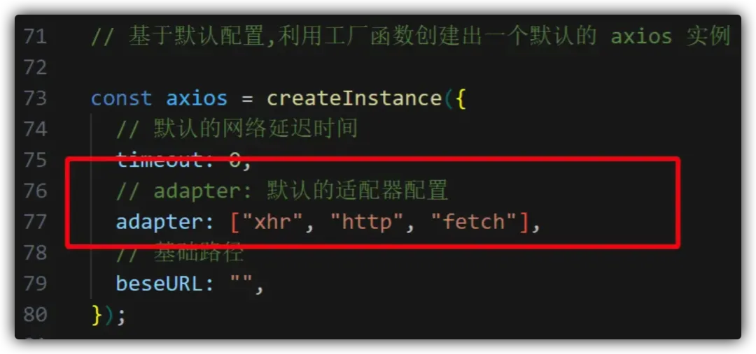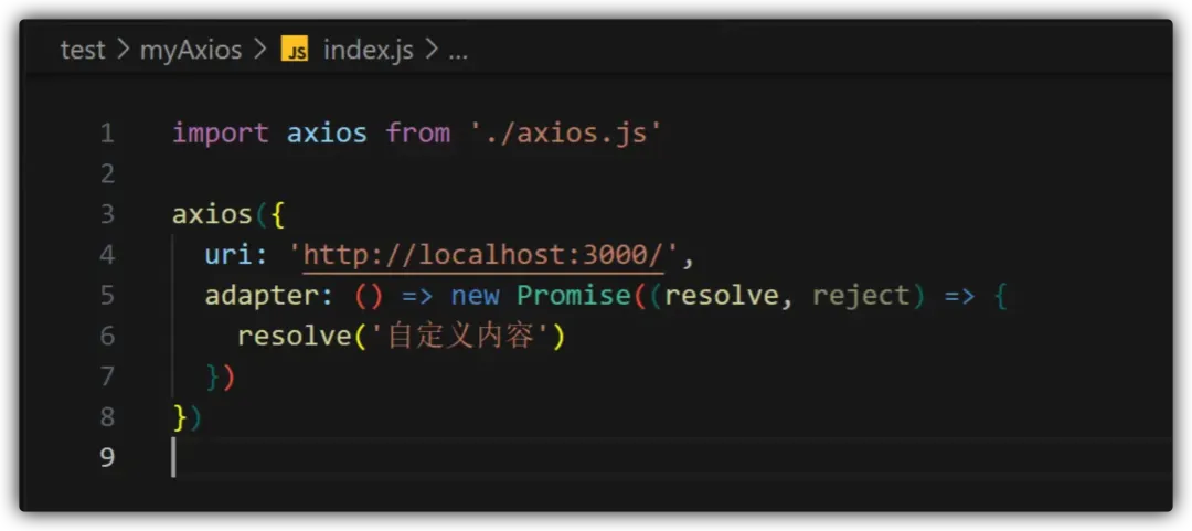 首先我们要明白一个点,和vue3中的渲染器同样的设计理念,axios中的请求器也是允许用户自定义的,用户只需要在配置中指定 adapter 配置,传入一个 () => Promise 类型的函数就可以了 ,因此 mini axios 也需要支持这个设计: