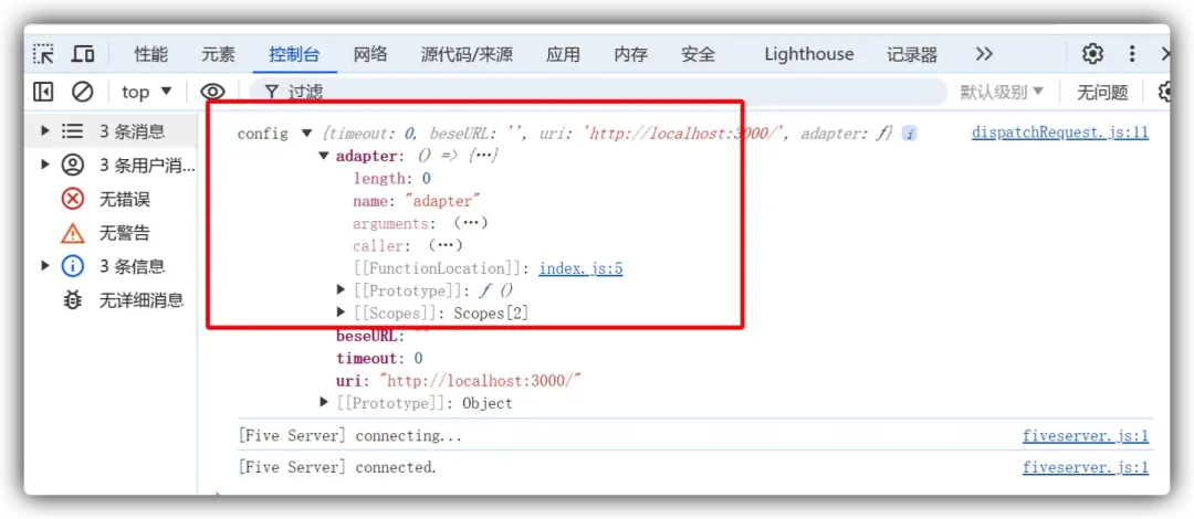 调整 dispatchRequest 函数,调用适配器发送请求: