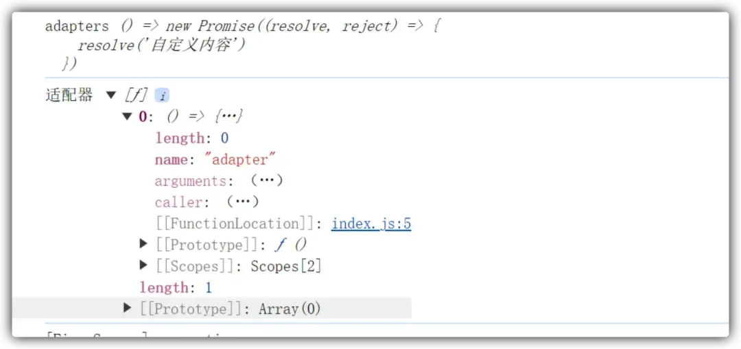 // getAdapte 参数归一化/** * 获取请求适配器的方法 * @param {Function | Function[]}adapters */const getAdapteHandlers = (adapters) => {returnArray.isArray(adapters) ? adapters : [adapters]}exportdefault {/** * 获取请求适配器的方法 * @param {Function | Function[] | string[]}adapters */ getAdapter(adapters) {// 参数归一化 adapters = getAdapteHandlers(adapters) },}