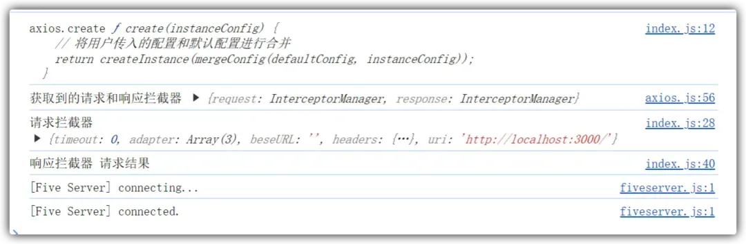 如果我们不需要进行额外的自定义配置,那么 axios 本身就已经可以开箱即用了。如果我们调用 create,本质上就是合并用户自定义的 axios 配置然后重新产生一个 requiest 方法。