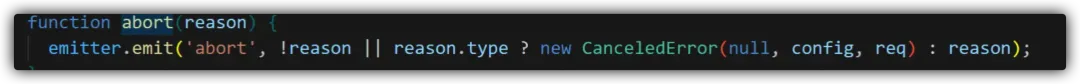 cancel 方法做的最核心的一件事情就是 resolvePromise(token.reason) 将上面聊到的 Promise 对象的状态变成已完成,从而将 subscribe 注册的任务全部推入微任务队列去进行执行。 -