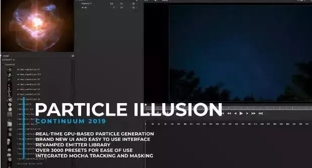 BCC 2019主要功能包括 Particle Illusion幻影粒子插件 的重生,出色的运动图形发生器,新的Title Studio文字图片处理着色器,如发光、射线和模糊的标题和字幕条;新的Mocha Essentials工作区,4个新工具:磁性边缘捕捉,几何形状等工具,实现更快的跟踪和遮罩,新的point-driven为Mocha 整体gpu加速。