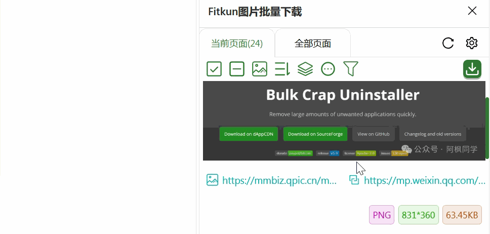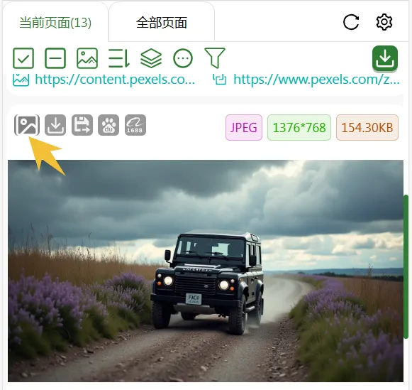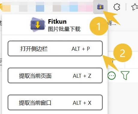 插件安装完成以后,我们点击插件,打开侧边栏,也可以直接提取当前页面,或者是浏览器打开的所有页面的图片。