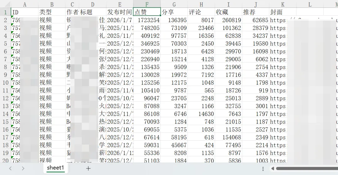比较厉害的功能②:批量下载数据。还可以通过批量下载数据的功能,下载当前页面上所有作品的运营数据,真的太实用了。