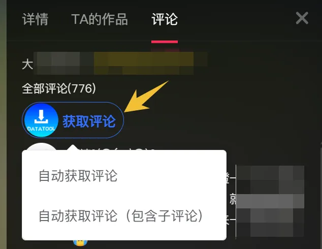 比较厉害的功能③:批量下载评论。进入到具体作品页面之后,可以在评论区看到一个获取评论按钮,可以通过这个按钮一键批量下载评论区的所有评论。
