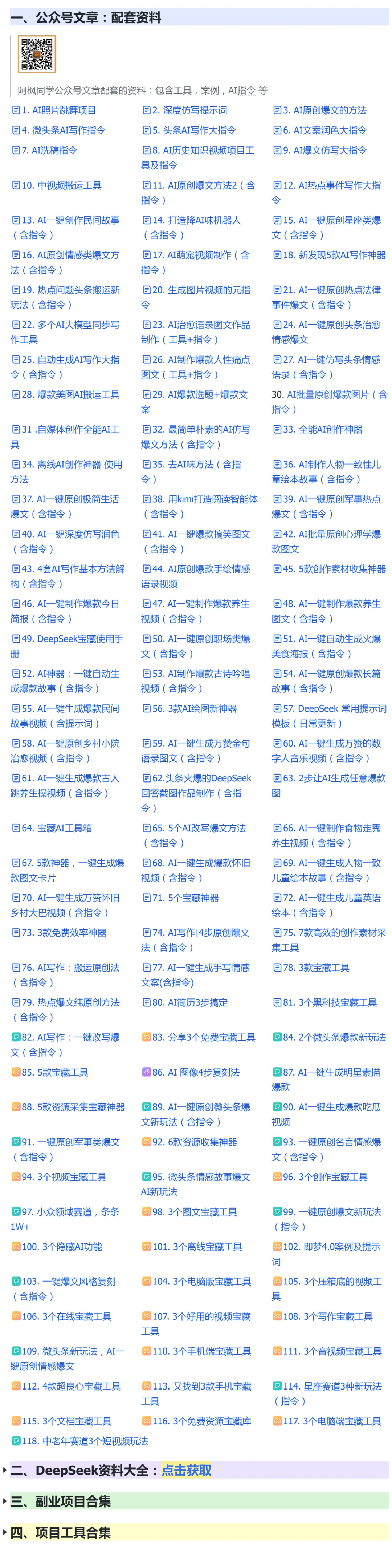 免费领取下面的工具包和副业项目合集。