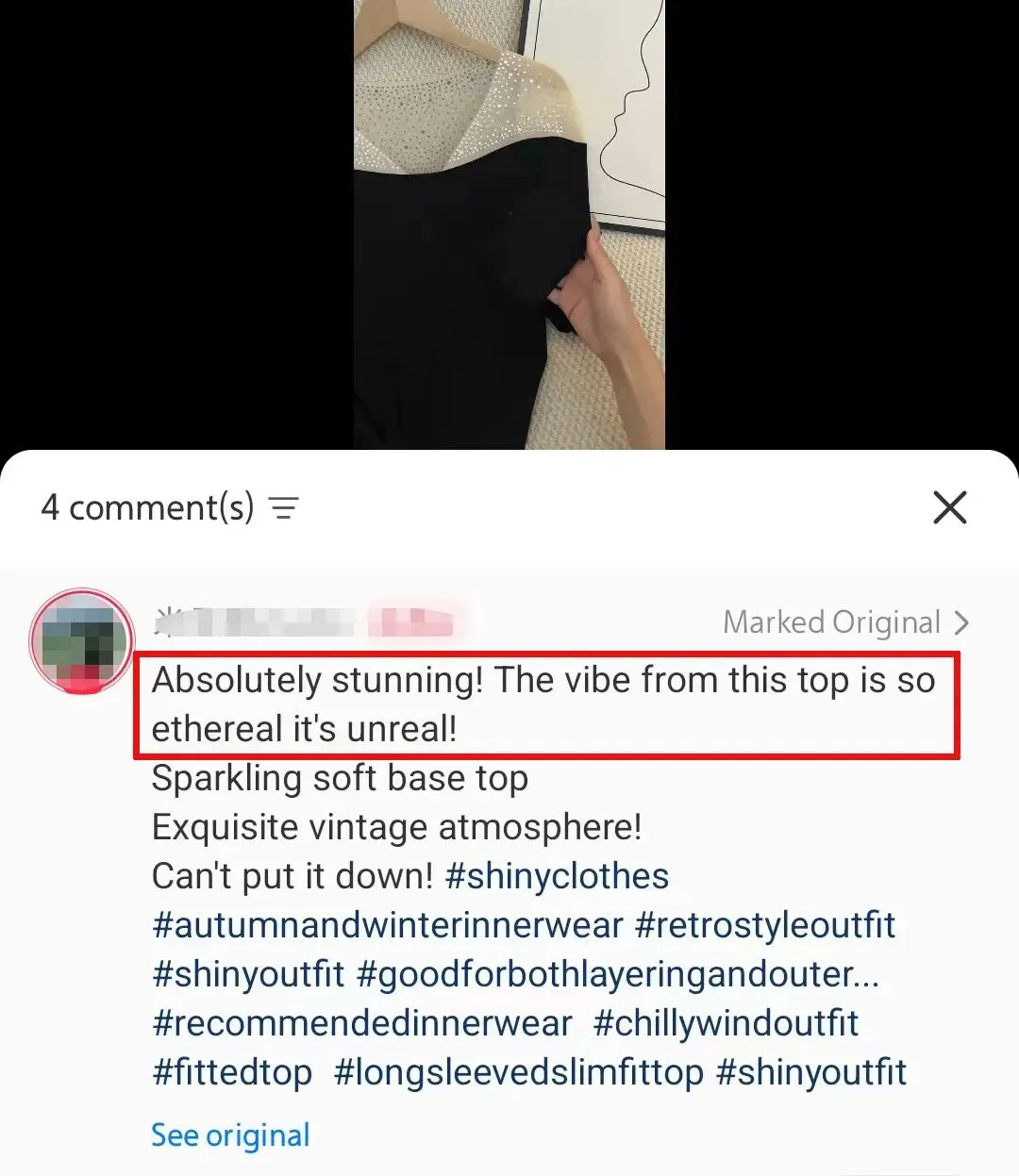 喜欢穿搭的,看到这条英文版笔记「Absolutely stunning! The vibe from this top is so ethereal it’s unreal!」: