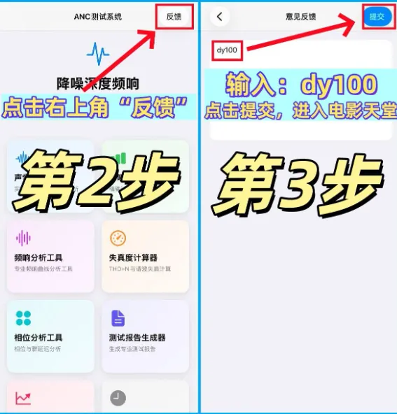 点击右上角 [反馈] 进入提交暗号 “dy100”