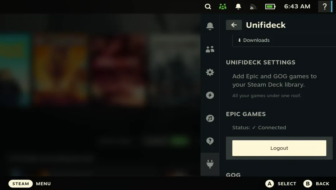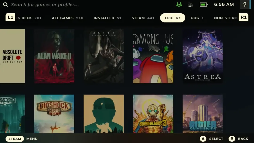 在Steam Deck游戏模式中直接访问Epic Games Store游戏库、GOG(Good Old Games)游戏库