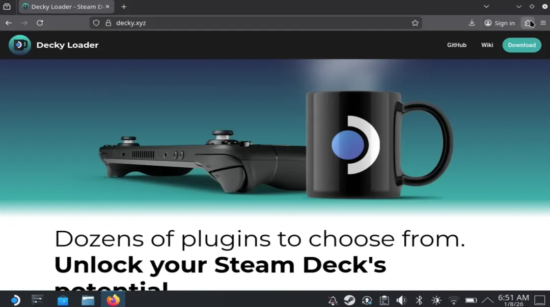 打开浏览器,下载Decky Loader安装文件