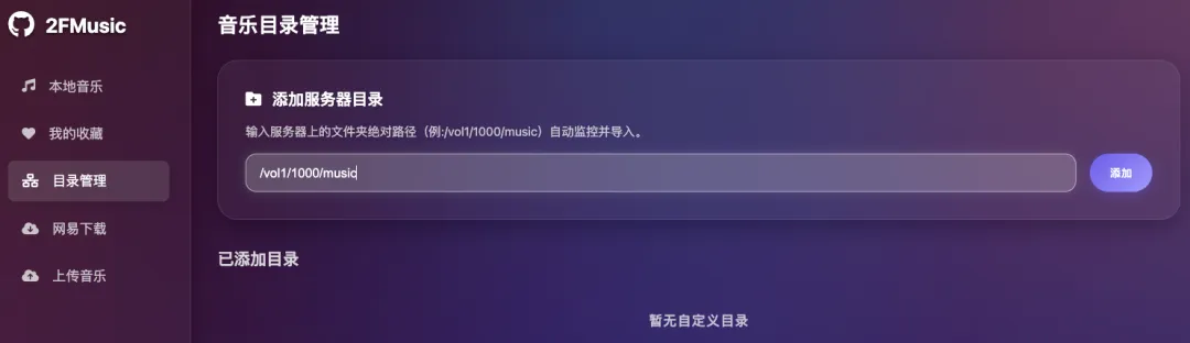 三、访问2Fmusic,并添加音乐库
