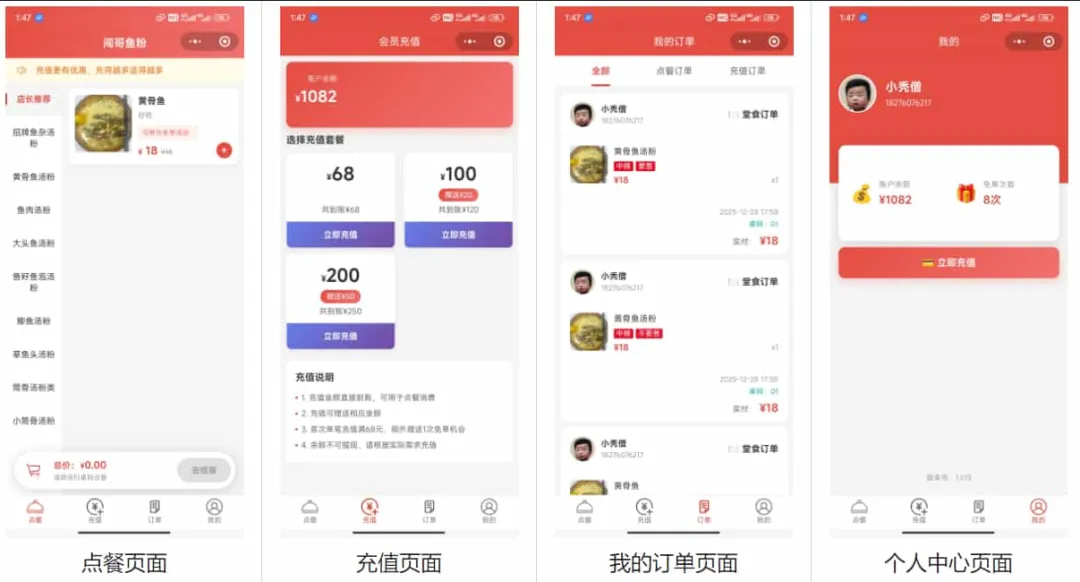 ✅ 查看点餐订单✅ 查看充值记录,一目了然4. 个人中心