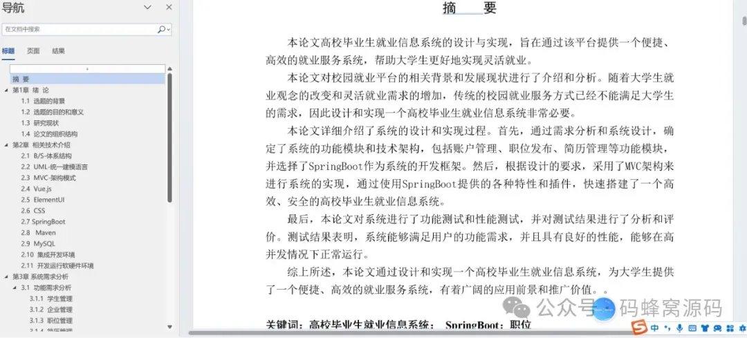 社会发展,大学毕业生就业困难成为社会关注的热点问题,校园就业服务平台作为大学生就业的重要渠道和桥梁,起到了联系学生和用人单位的作用,但目前存在的问题限制了校园就业服务平台的发展和使用。 传统的校园就业服务平台功能比较单一,一般只会提供简历投递以及招聘信息发布这类普通的功能,缺少灵活性与创新性,学生和用人单位往往要借助好几个平台来完成信息的发布与筛选工作,给双方造成了麻烦。 传统的校园就业服务平台只针对全日制大学生,没有考虑到其他就业群体的需求,例如:非全日制学生、毕业回校创业的学生等群体就没有专门的就业服务平台。 传统校园就业服务平台用户体验和界面设计比较陈旧,无法满足现代化用户的需要,用户想要一个界面简单、功能丰富、交互友好的校园就业服务平台。 针对上述问题,本研究会以SpringBoot技术为依托,去设计并达成一个灵活的校园就业服务平台,通过加入新功能和新服务来提升平台的灵活性和创新性,满足不同群体的就业需求,而且要改良用户的体验感受以及界面设计,让平台更加易用且让用户满意,通过研究和操作探寻校园就业服务平台的发展方向,给大学生就业给予更好的服务。