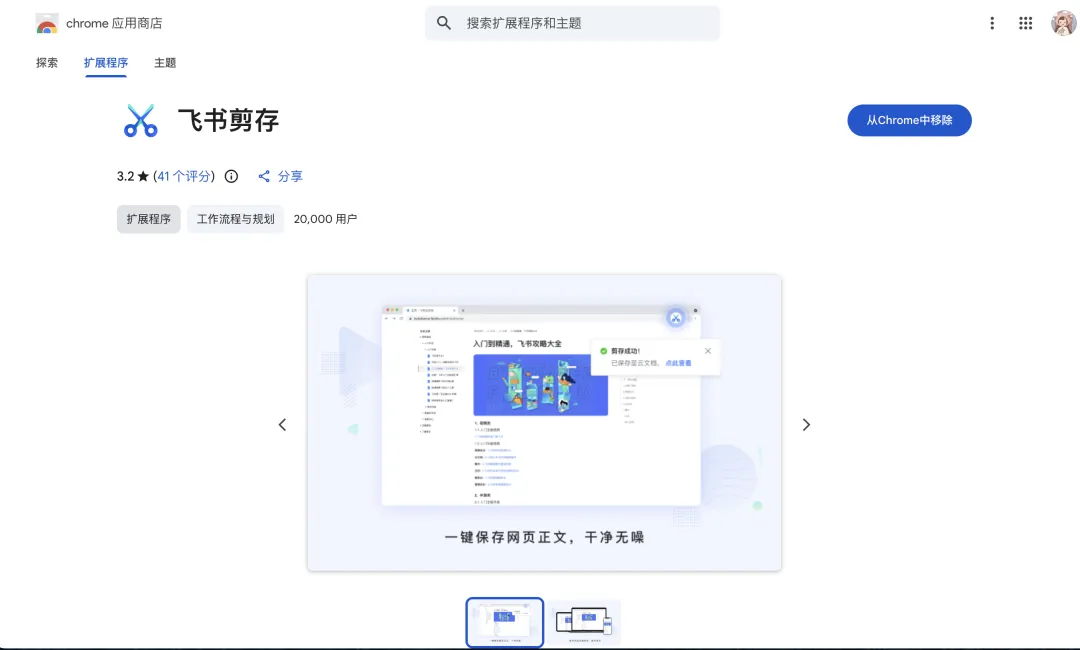 3. 搜索“飞书剪存”或“obsidian web clipper”,点击「添加至Chrome」即可