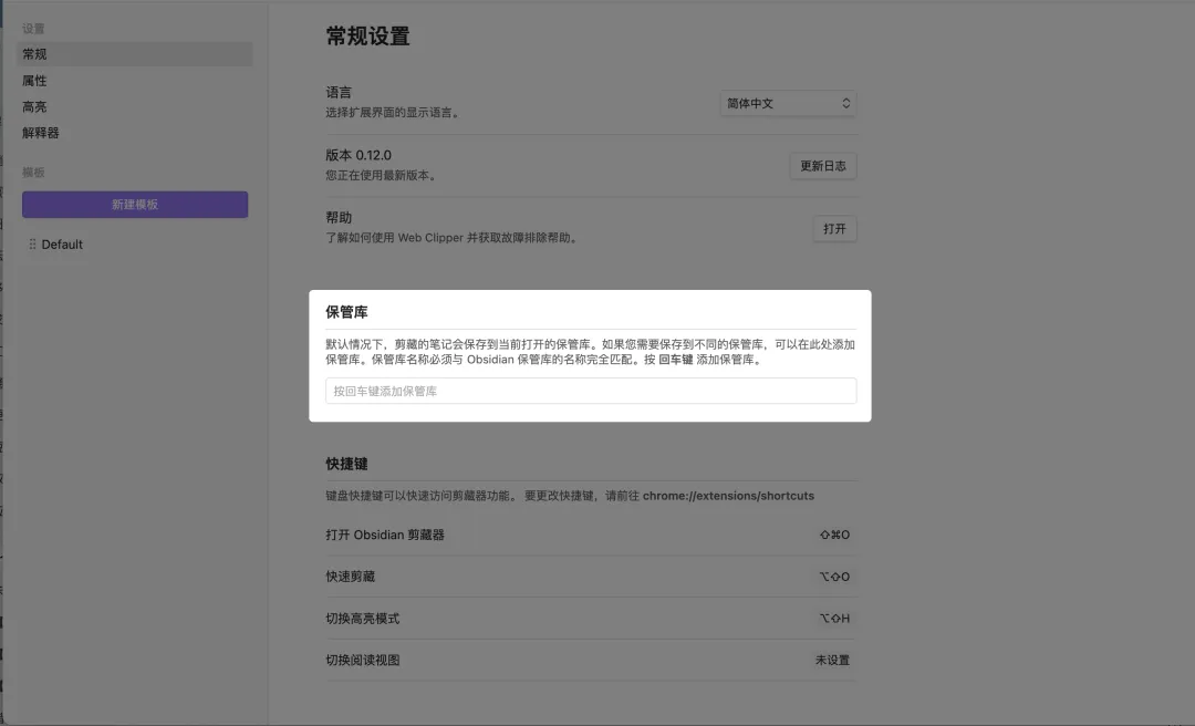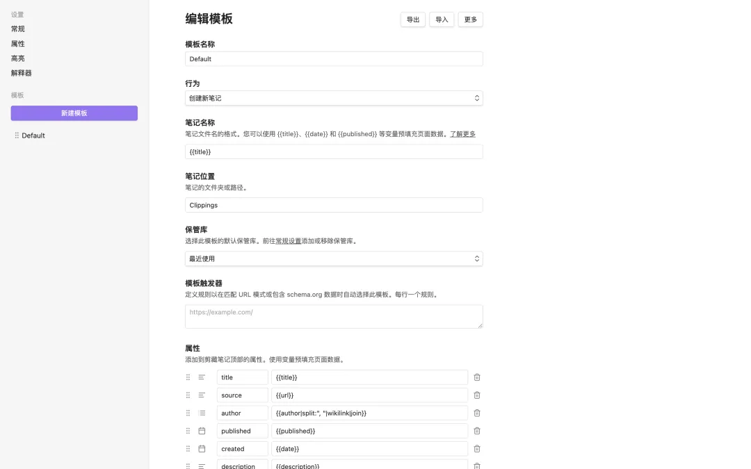 obsidian自定义保存模板,初始会自带默认模版;