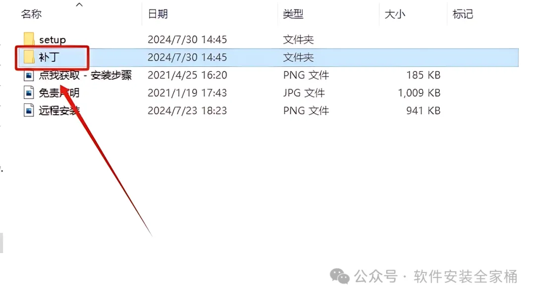 9.返回到解压的安装包文件夹中,打开【补丁】文件夹。
