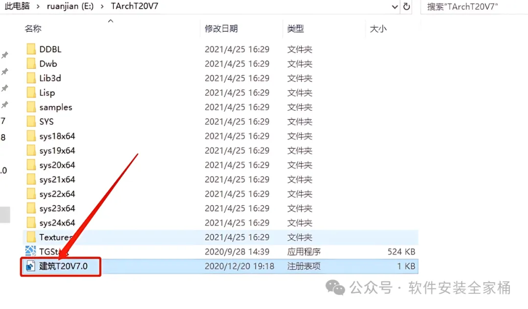 2.打开解压后的【天正建筑T20 V7.0】文件夹。