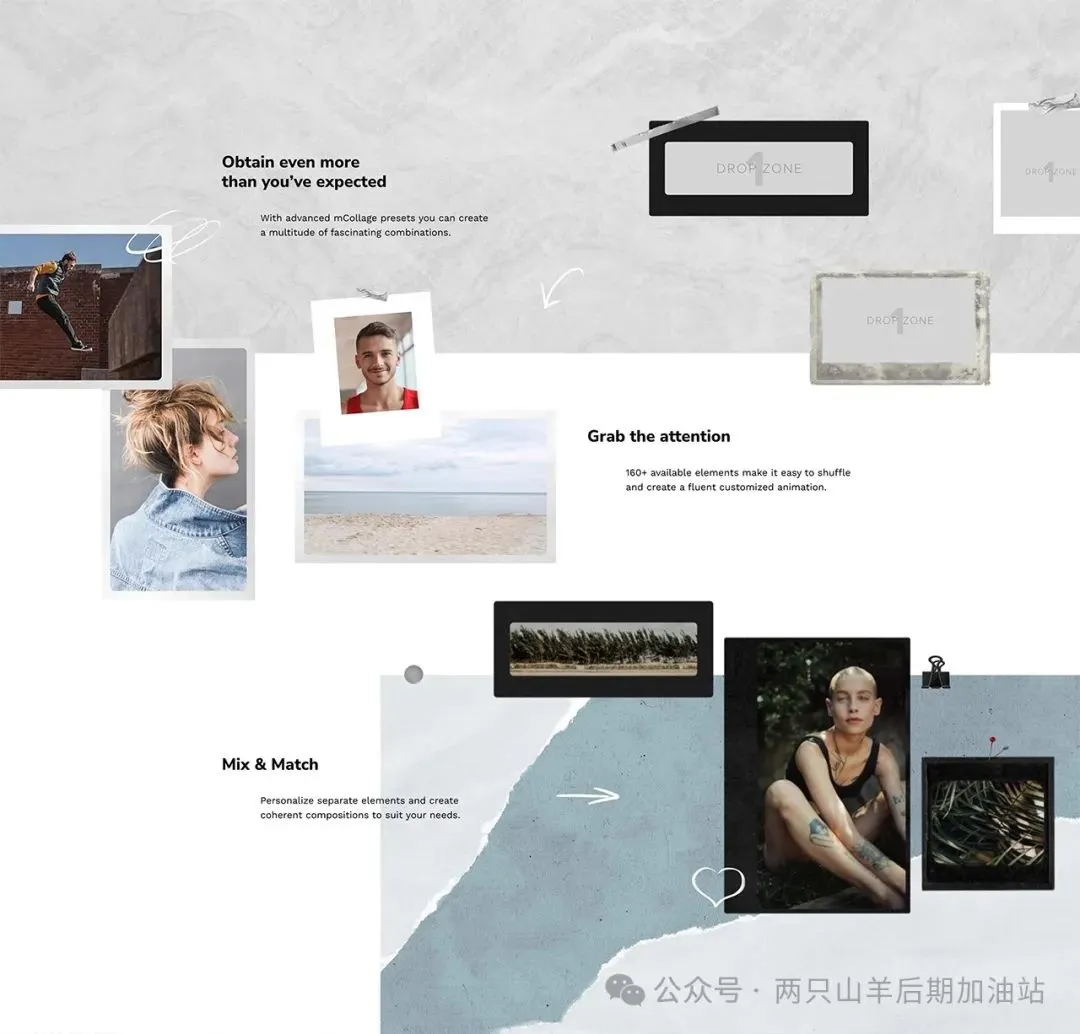 160种多样化的拼贴组件流畅、不同的动画和各种外观,以适合您的风格和角色。适用于各种用途,由于以图形设计格式规划和安排您的项目,您的工作将得到促进。思维导图、愿景板、剪贴簿、照片库…您所有的美好回忆都聚集在一起,回忆起那些特殊的时刻。