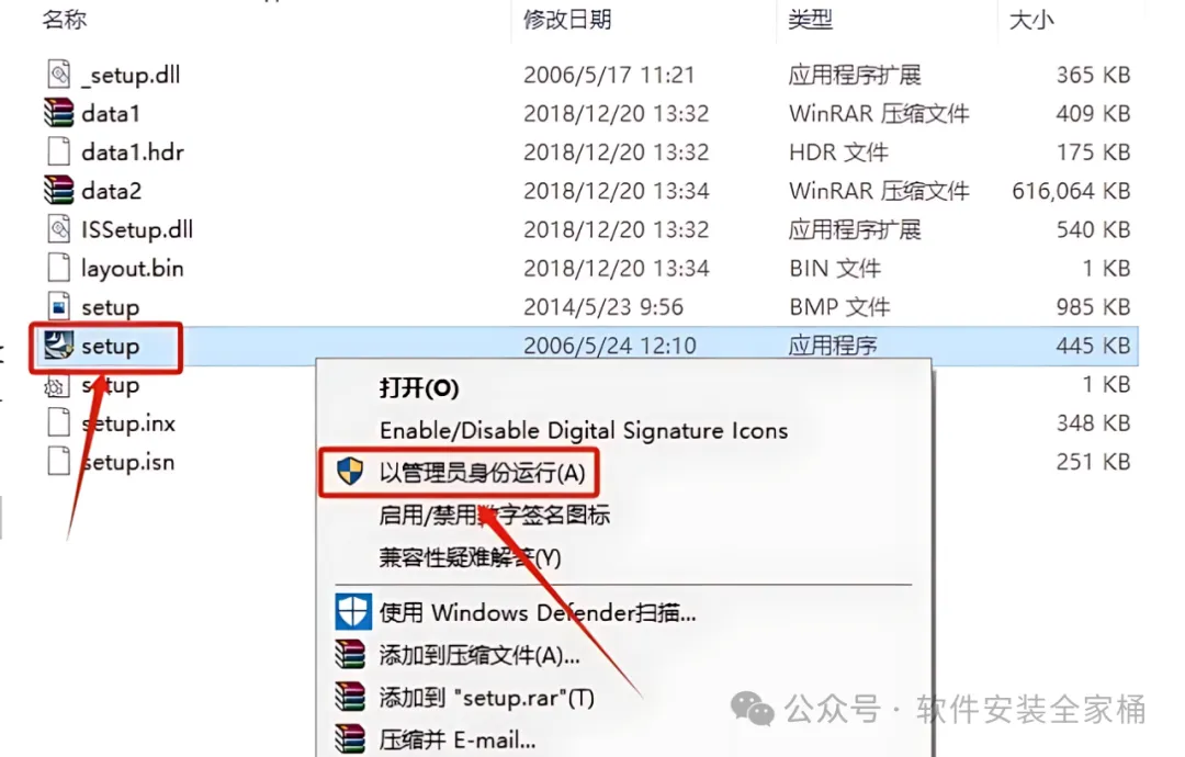 4.鼠标右击【setup】安装程序,选择【以管理员身份运行】。
