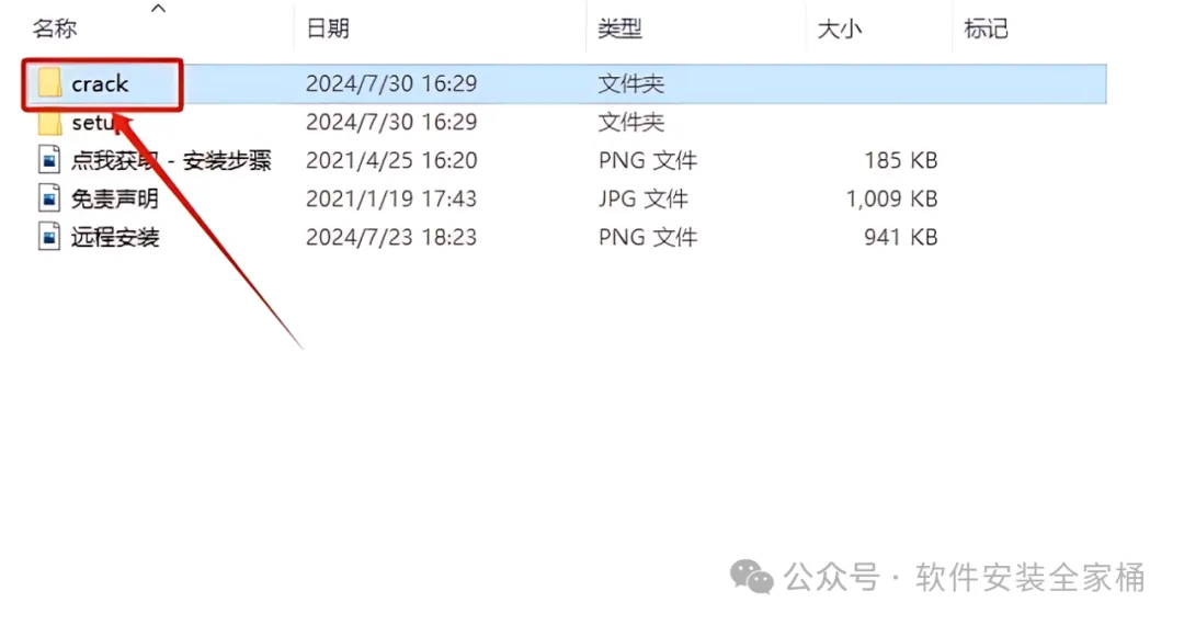 9.返回到之前解压的安装包文件夹中,打开【crack】文件夹。