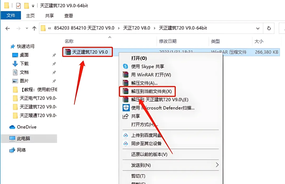 1.选中下载的天正软件安装包,鼠标右击选择【解压到当前文件夹】。