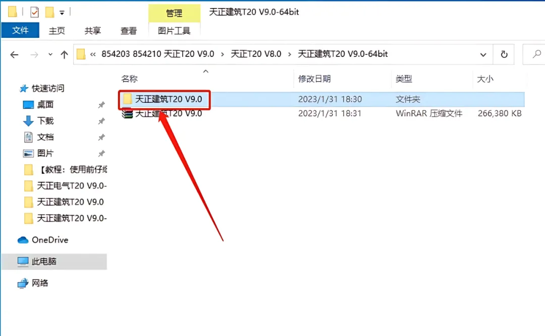 2.打开解压后的【天正建筑T20 V9.0】文件夹。