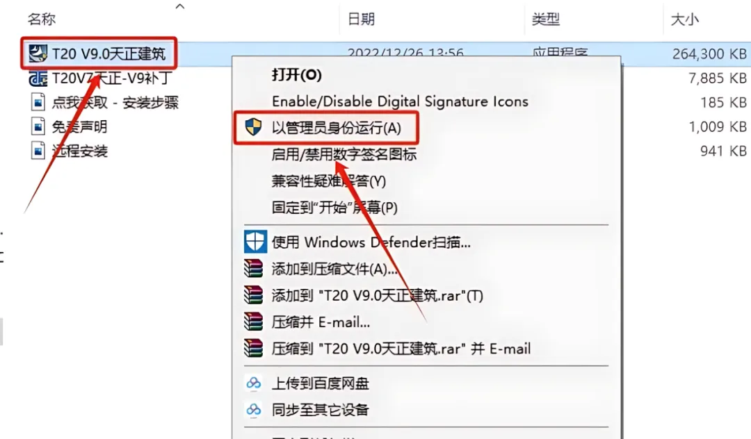 3.右击【天正建筑T20 V9.0】安装程序,选择【以管理员身份运行】。