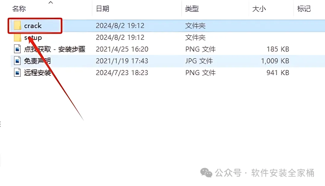 9.返回到解压的安装包文件夹中,打开【crack】文件夹。