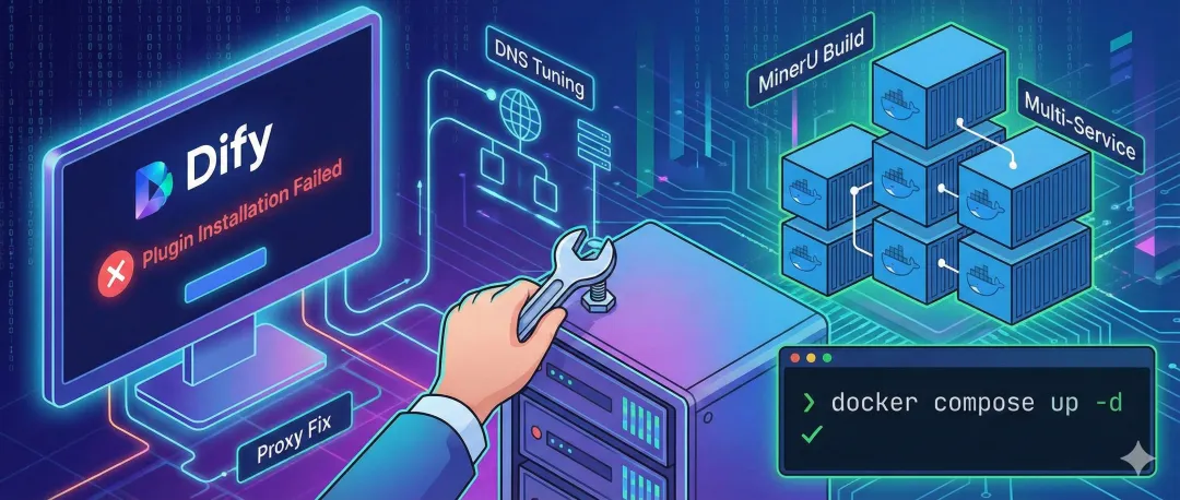 如果你在自建 Dify 环境时,遇到了插件安装反复重试报错、镜像构建失败或多容器管理低效的问题,那么这篇文章就是为你准备的“排雷手册”。