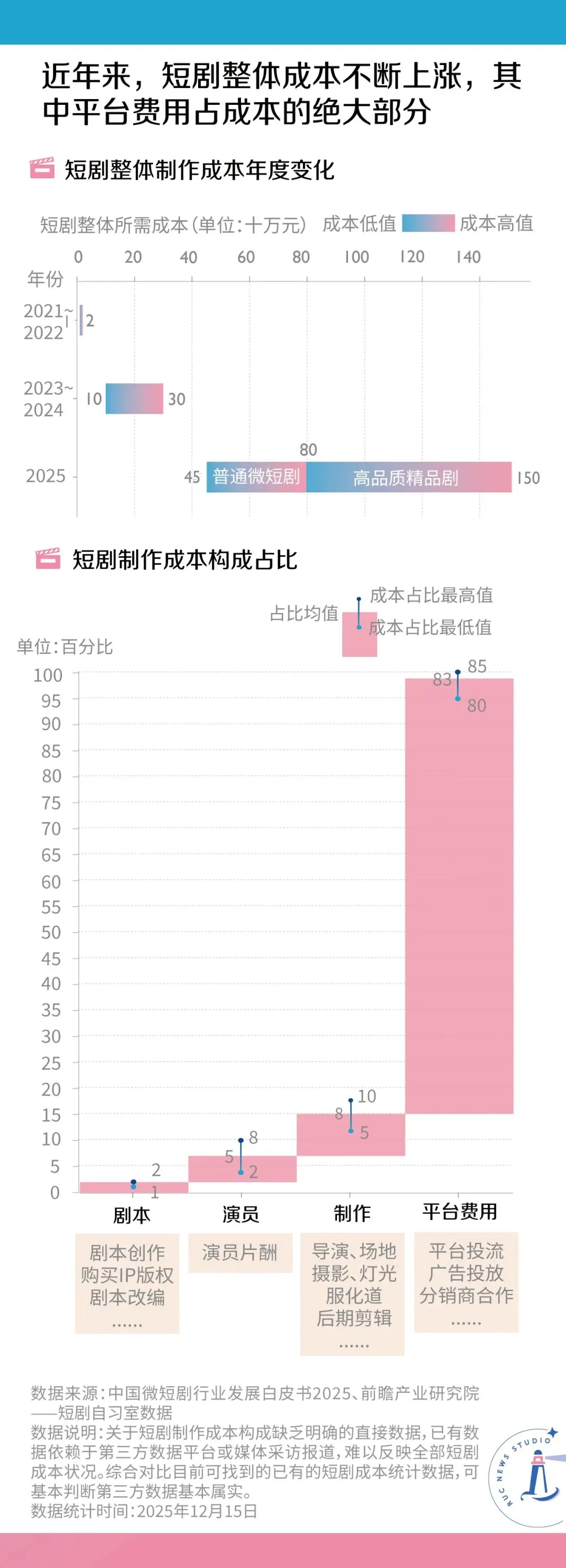进一步聚焦短剧行业,其成本结构呈现出明显的系统性倾斜。近年来,随着市场竞争加剧,一部短剧的整体投入水涨船高。