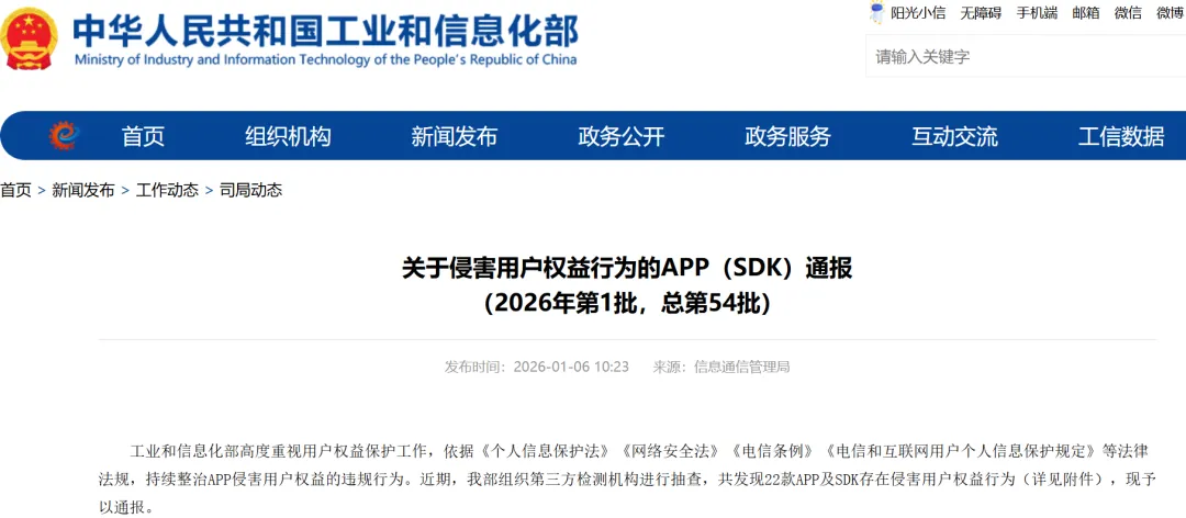 据悉,上述App及SDK应按有关规定进行整改,整改落实不到位的,工业和信息化部将依法依规组织开展相关处置工作。